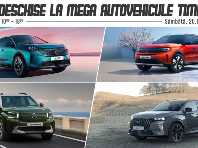 Vino! Testeaza! Alege! Pe 19 și 20 septembrie te așteptăm la evenimentul Porți Deschise în showroomul Peugeot, Citroen, DS si Opel. Vino la MEGA GROUP - Calea Lugojului 128 și profită de ofertele speciale pregătite pentru tine. Descoperă designul, tehnologia și experiența de condus Peugeot, confortul, accesibilitatea și simplitatea Citroen, estetica avangardistă și eleganța DS, stilul german, uman și primitor Opel. Indiferent...